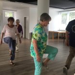 45 Minuten Bewegungsübungen gefolgt von geselligem Beisammensein.
