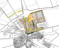 In der 22. Änderung des Flächennutzungsplans wird die Darstellung der überwiegend als Landwirtschaft gekennzeichneten Fläche umgeändert in ein Gewerbegebiet, aufgeteilt in mehrere Teilflächen und ein Sondergebiet mit der Zuweisung „Bau- und Gartenfachmarkt"