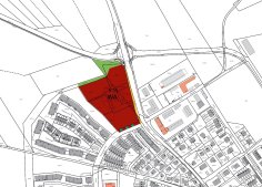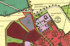 Mit der 1. Änderung des Bebauungsplan Nr. 169 wird - im Wege der Berichtigung - auch der Flächennutzungsplan angepasst. Anstelle des Gewerbegebietes ist ein allgemeines Wohngebiet dargestellt, wobei die Ausdehnung des Baugebietes in Norden verringert ist zugunsten der Erweiterung der Grünfläche am Ortsrand.