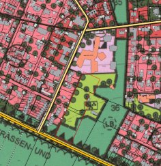 Im Zuge der Aufstellung des Bebauungsplans Nr. 181 wird, im Wege der Berichtigung, auch der Flächennutzungsplan geändert. Die bisherige Nutzung private Grünfläche mit vorhandenen und geplanten Einzelbäumen sowie im Nordwesten einem Teilbereich Gemeinbedarf (kulturelle Einrichtung) und im Süden Waldfläche mit Immissionsschutzmaßnahmen wird nun im nördlichen Bereich als Allgemeines Wohngebiet WA und im südlichen Bereich als Gemeinbedarf (soziale Einrichtung) sowie weiterhin als Waldfläche mit Immissionsschutzmaßnahmen dargestellt.