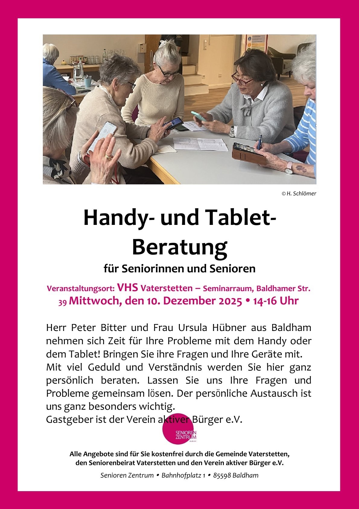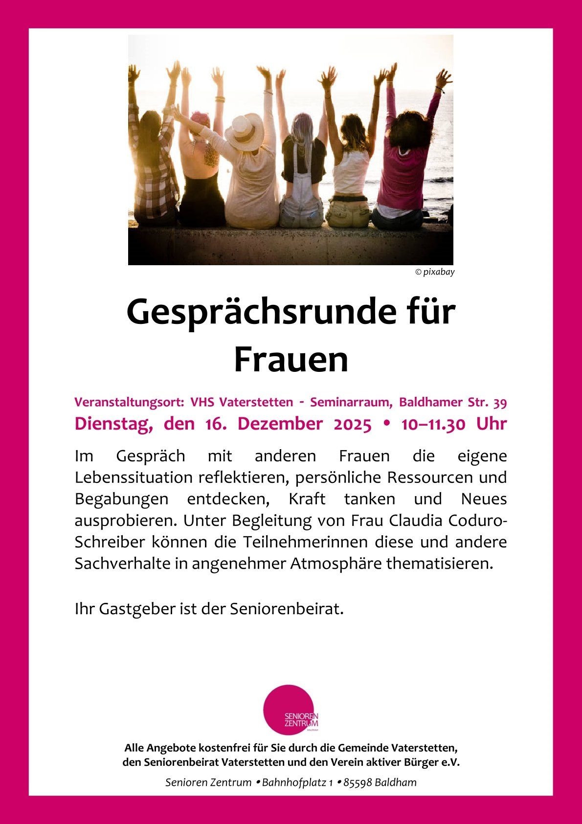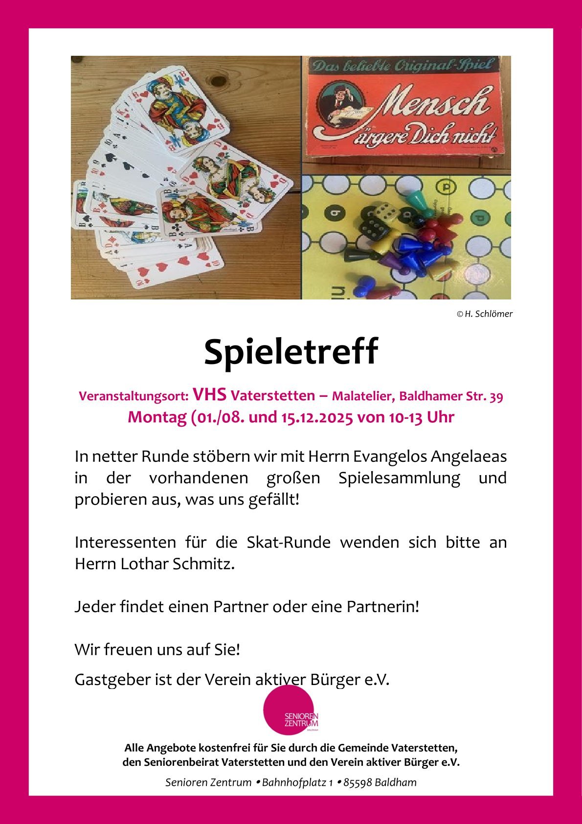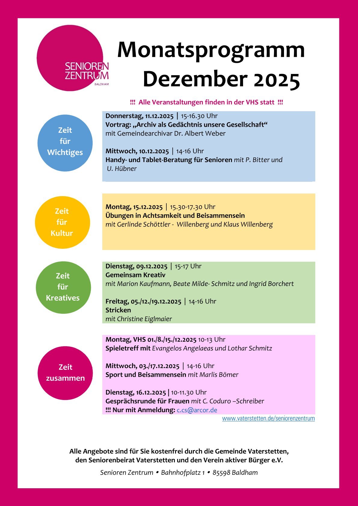 Alle Angebote sind für die Senioren und Seniorinnen unserer Gemeinde kostenfrei. Gemeinsam freuen wir uns auf viele interessante Begegnungen im Senioren Zentrum Baldham