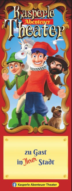 Sehr geehrte Damen und Herren, Das Kasperle Abenteuer Theater kommt in ihrer Gemeinde nach Parsdorf auf den Platz neben HIT (Am Lerchenfeld) Und gibt dort seine Vorstellungen im Theater Zelt