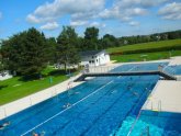 Das beheizten Freibad bietet eine Wasserfläche von rund 1200 qm sowie eine Sprunganlage mit 1m und 3m Brett und einen 5m Turm. Ebenso 50 m Schwimmbahnen, Breitrutsche und einen großen Kleinkinderbereich. Desweitern gibt es eine Tischtennisplatte, ein Volleyballnetz, Schaukeln & Klettergerüst und einen Kiosk mit großzügige Liegeflächen mit altem Baumbestand