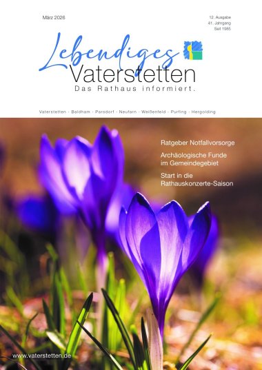 Ab dem 15. März finden Sie das neue "Lebendiges Vaterstetten" in Ihren Briefkästen. Falls es bei Ihnen nicht angekommen ist, schreiben Sie uns bitte eine Mail unter Angabe Ihrer Adresse.