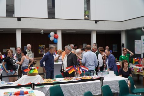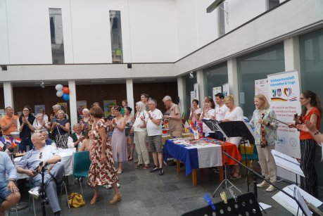 Die beiden Fotos zeigen Impressionen vom Tag der Sätdtepartnerschaften 2025.
